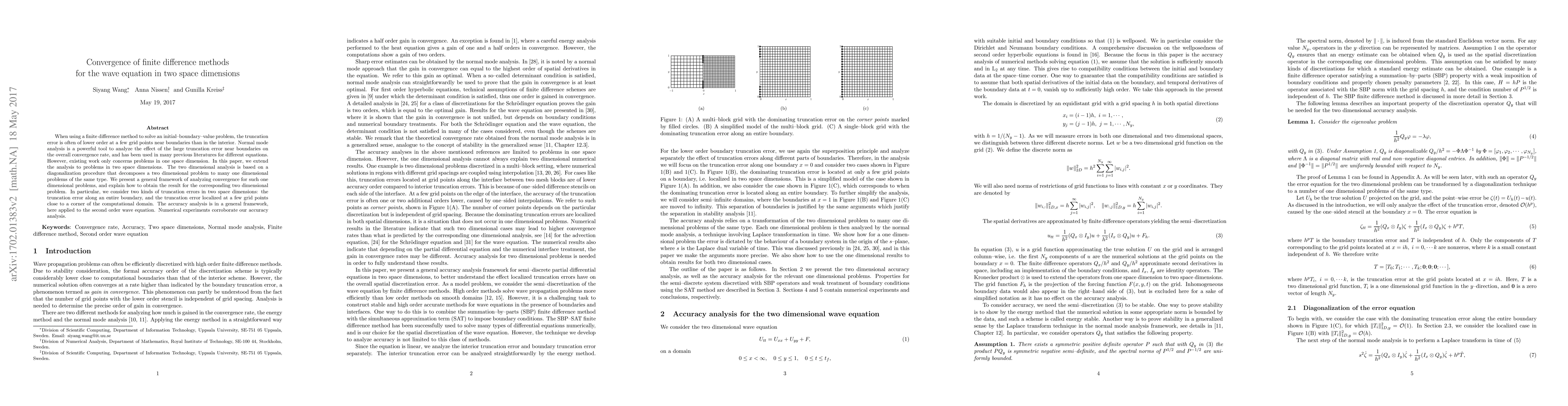 This paper extends normal mode analysis for convergence rate assessment of finite difference methods from one to two space dimensions for the wave equation, using a diagonalization procedure to decompose the 2D problem into 1D counterparts. Numerical experiments support the theoretical findings.