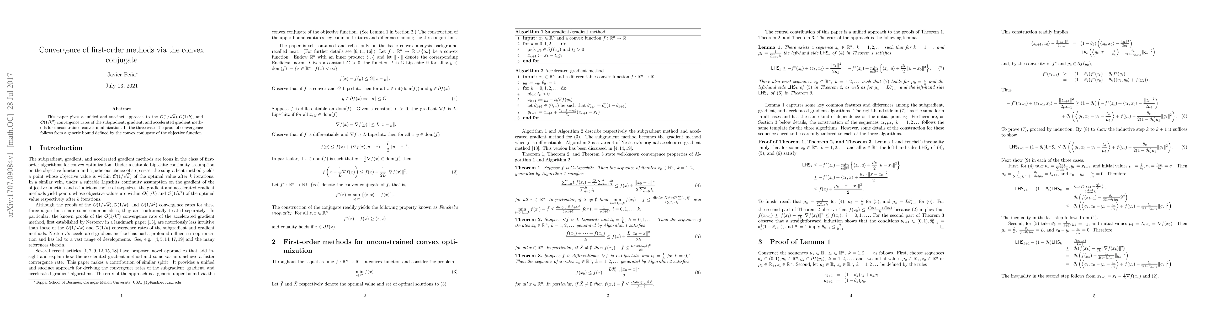 This paper presents a unified framework to derive convergence rates for first-order optimization methods, demonstrating $O(1/\sqrt{k}), O(1/k),$ and $O(1/k^2)$ convergence through bounds defined by the convex conjugate of the objective function.