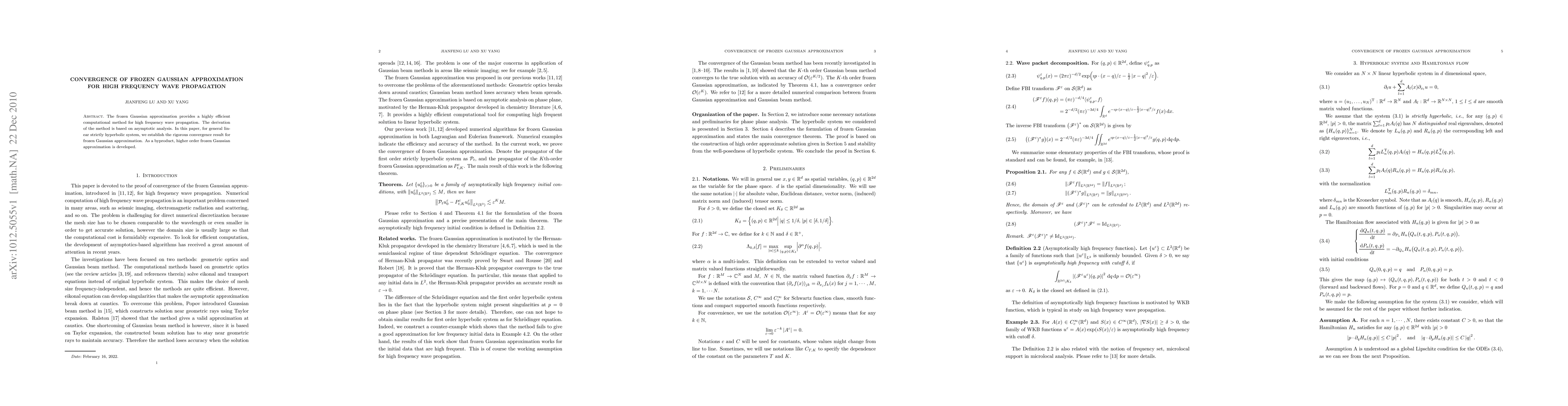 This paper rigorously proves the convergence of the frozen Gaussian approximation for high frequency wave propagation in general linear strictly hyperbolic systems, and also develops a higher-order version of this efficient computational method.