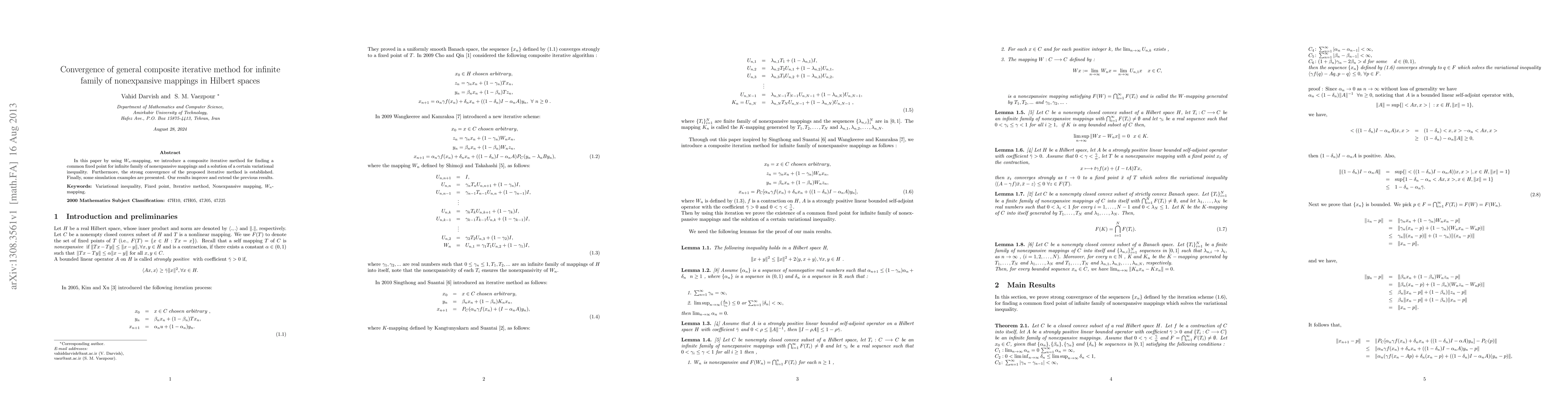 This paper introduces a composite iterative method using $W_{n}$-mapping to find common fixed points for an infinite family of nonexpansive mappings and solutions to a variational inequality in Hilbert spaces. The method is shown to strongly converge, improving upon previous results with provided simulation examples.