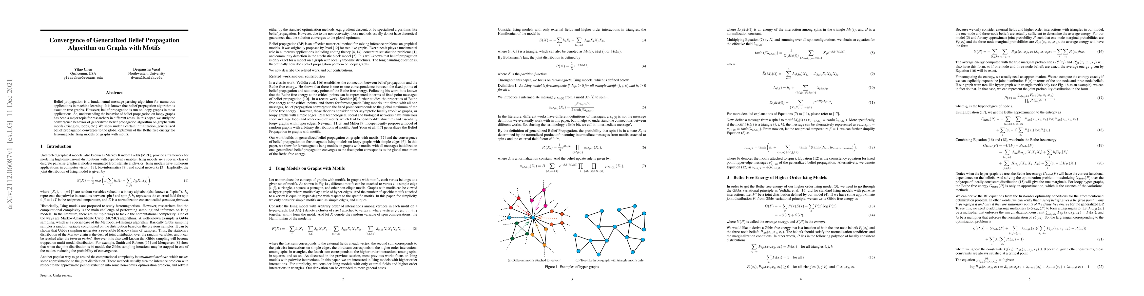 This paper investigates the convergence of the generalized belief propagation algorithm on loopy graphs containing motifs like triangles and loops. It demonstrates that under specific initialization conditions, the algorithm converges to the global optimum of the Bethe free energy for ferromagnetic Ising models on such graphs.