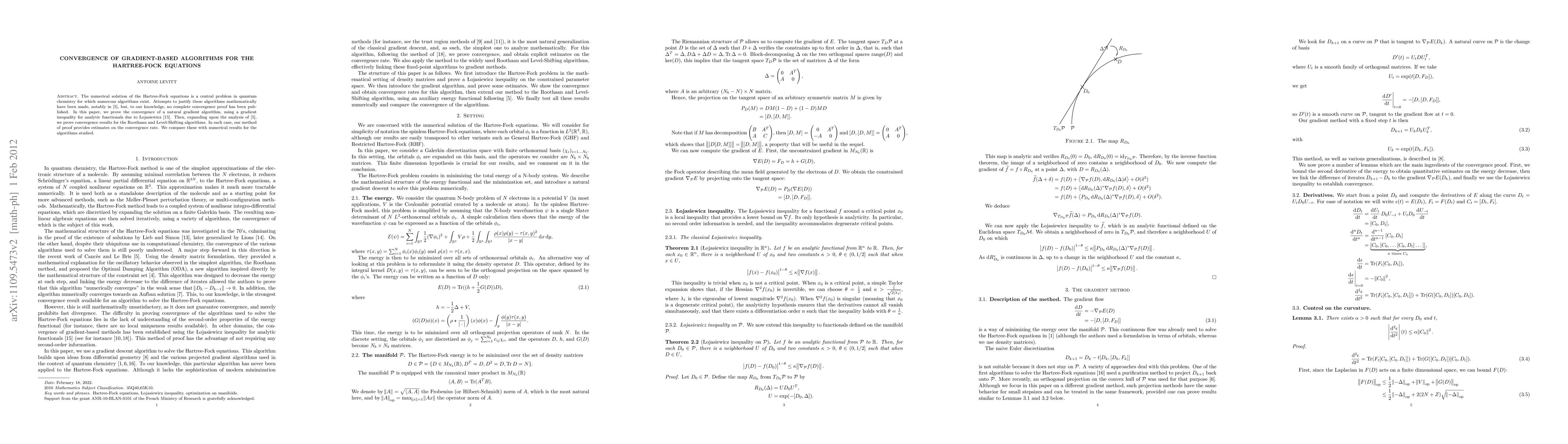 Researchers prove convergence of three Hartree-Fock algorithms using a novel gradient inequality, providing estimates on convergence rates and comparing them to numerical results.