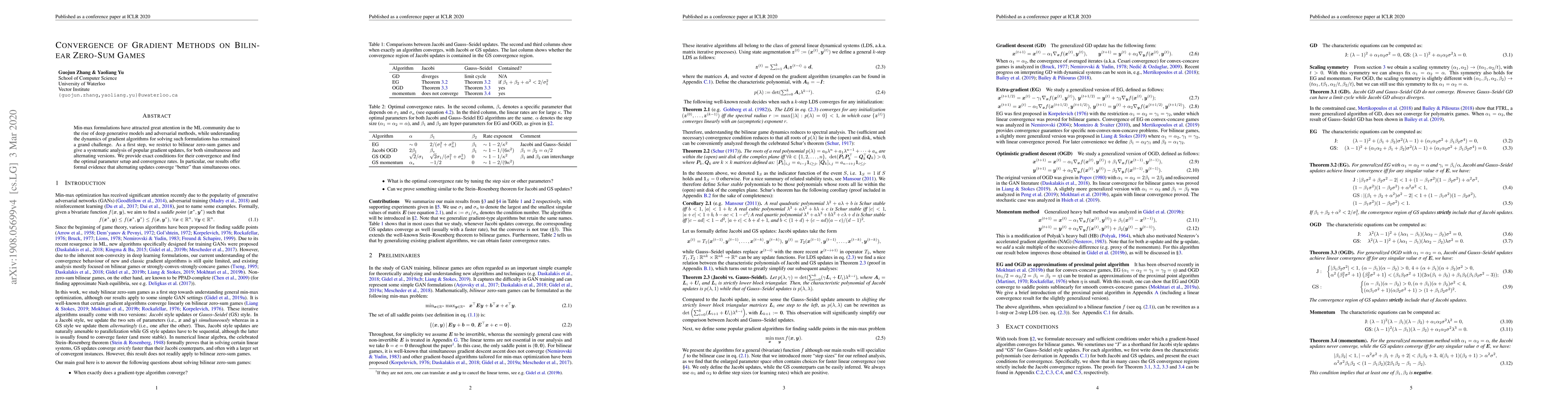 This paper systematically analyzes the convergence of gradient methods for solving bilinear zero-sum games, providing exact conditions for convergence and optimal parameter setups. It finds that alternating gradient updates converge more efficiently than simultaneous updates.