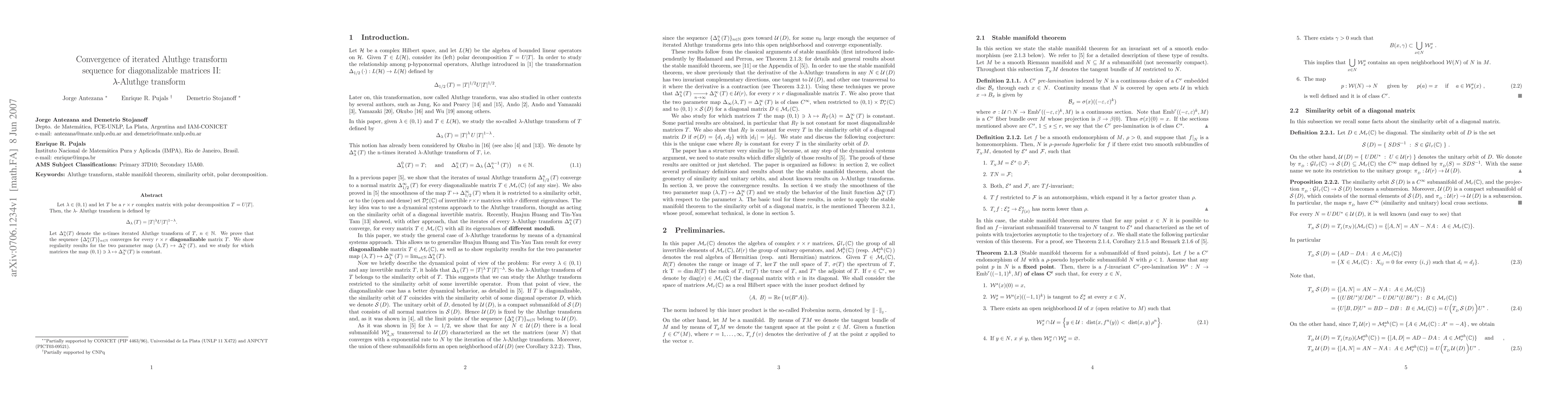 This paper explores the convergence of the iterated $\lambda$-Aluthge transform sequence for diagonalizable matrices, proving that the sequence $\{\Delta_\lambda^{n}(T)\}_{n\in\mathbb{N}}$ converges for any diagonalizable matrix $T$. It also investigates the regularity of the two-parameter map and conditions under which the map is constant.