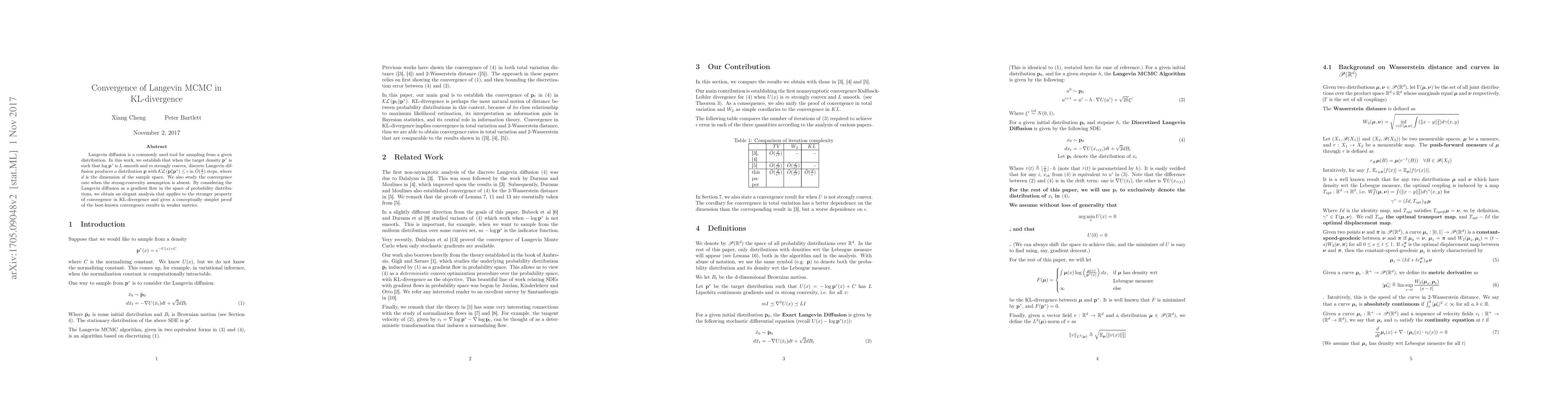 This paper establishes the convergence rate of discrete Langevin diffusion in the KL-divergence, showing it achieves $KL(p||p^*)\leq \epsilon$ in $\tilde{O}(\frac{d}{\epsilon})$ steps under $L$ smoothness and $m$ strong convexity of $\log p^*$. It also analyzes the scenario without strong-convexity, providing a simpler proof of the convergence in weaker metrics.