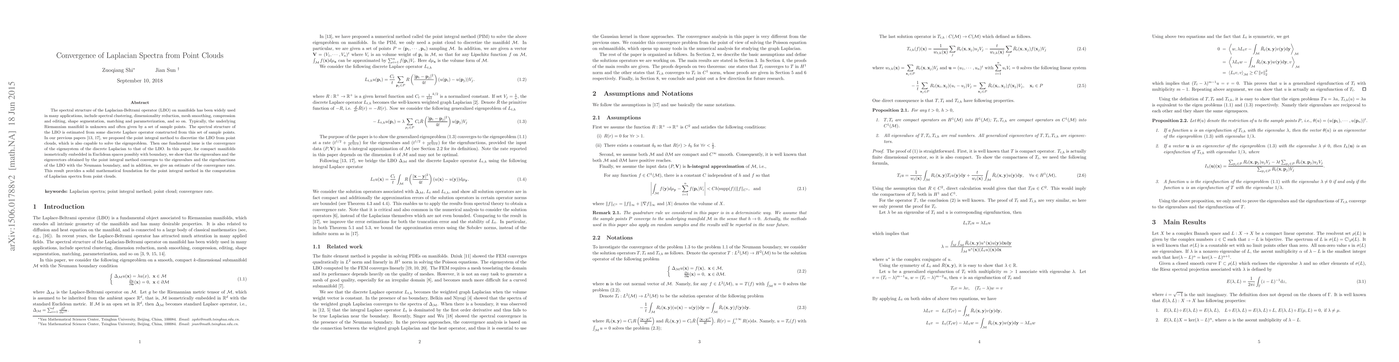 The spectral structure of the Laplacian-Beltrami operator (LBO) on manifolds has been widely used in many applications, include spectral clustering, dimensionality reduction, mesh smoothing, compression and editing, shape segmentation, matching and parameterization, and so on. Typically, the underlying Riemannian manifold is unknown and often given by a set of sample points. The spectral structure of the LBO is estimated from some discrete Laplace operator constructed from this set of sample points. In our previous papers, we proposed the point integral method to discretize the LBO from point clouds, which is also capable to solve the eigenproblem. Then one fundmental issue is the convergence of the eigensystem of the discrete Laplacian to that of the LBO. In this paper, for compact manifolds isometrically embedded in Euclidean spaces possibly with boundary, we show that the eigenvalues and the eigenvectors obtained by the point integral method converges to the eigenvalues and the eigenfunctions of the LBO with the Neumann boundary, and in addition, we give an estimate of the convergence rate. This result provides a solid mathematical foundation for the point integral method in the computation of Laplacian spectra from point clouds.