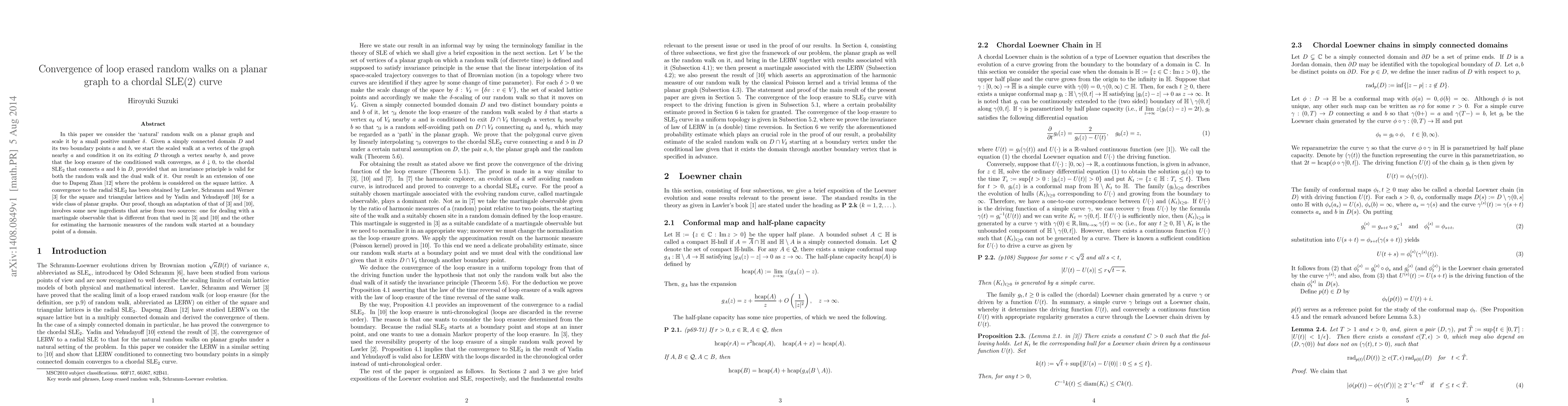 This paper studies how a random walk on a planar graph converges to a chordal SLE(2) curve as the walk's scale decreases, under certain conditions.