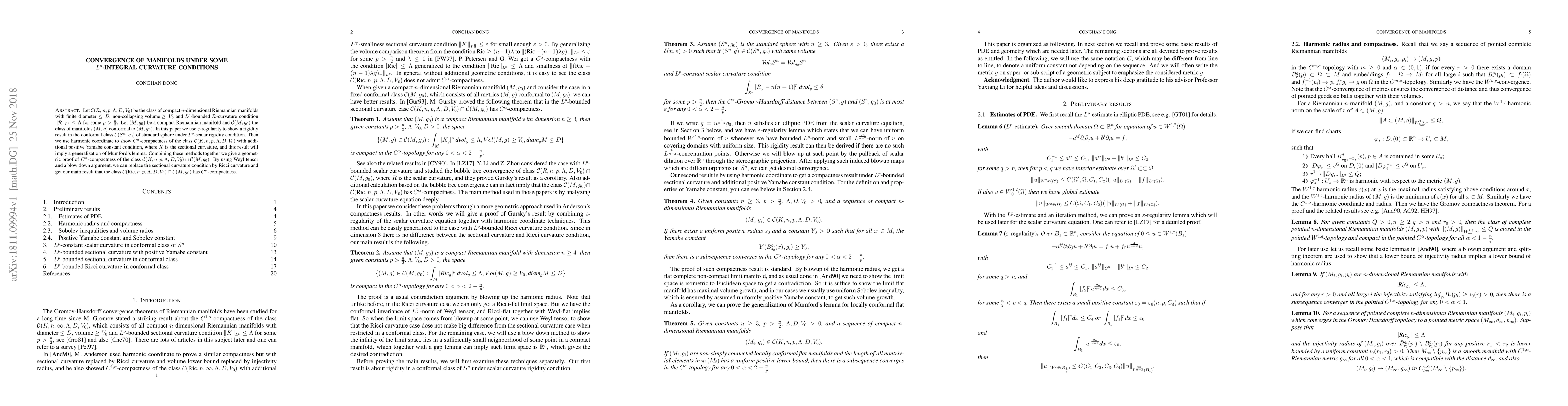 This paper demonstrates $C^{\alpha}$-compactness for classes of compact Riemannian manifolds under $L^p$-integral curvature conditions, using conformal rigidity and harmonic coordinates. It generalizes Mumford's lemma and ultimately shows $C^{\alpha}$-compactness for the class of manifolds with Ricci curvature bounded by a given condition.