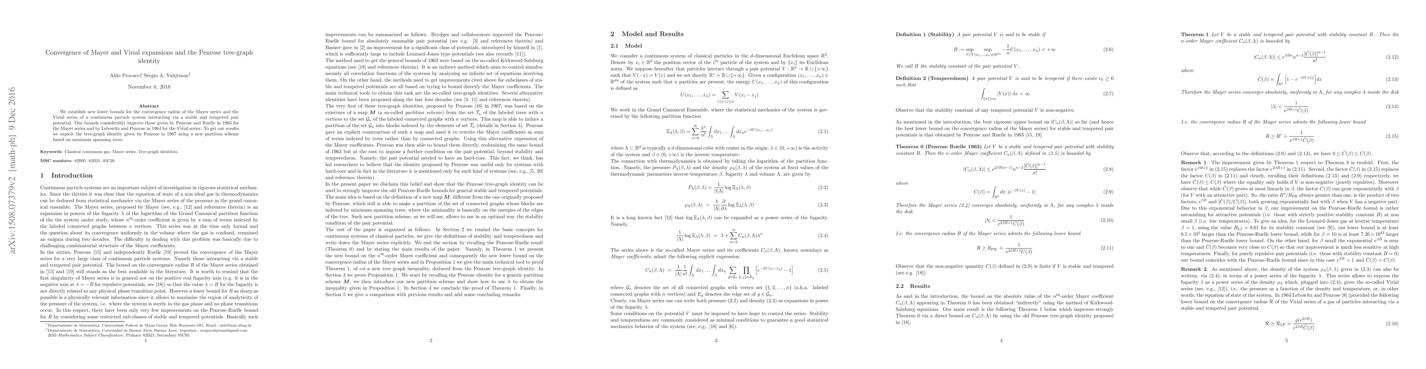 We establish new lower bounds for the convergence radius of the Mayer series and the Virial series of a continuous particle system interacting via a stable and tempered pair potential. Our bounds considerably improve those given by Penrose and Ruelle in 1963 for the Mayer series and by Lebowitz and Penrose in 1964 for the Virial series. To get our results we exploit the tree-graph identity given by Penrose in 1967 using a new partition scheme based on minumum spanning trees.
