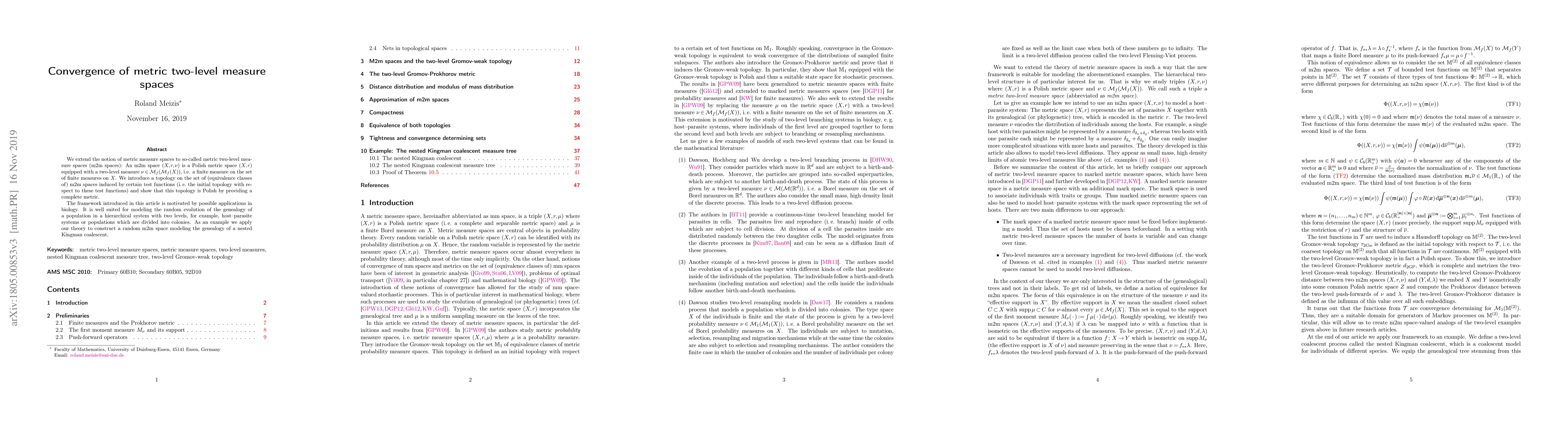 This paper extends the concept of metric measure spaces to metric two-level measure spaces (m2m spaces), introducing a topology on these spaces and proving it is Polish. The framework is motivated by applications in biology, particularly modeling hierarchical systems like host-parasite interactions.
