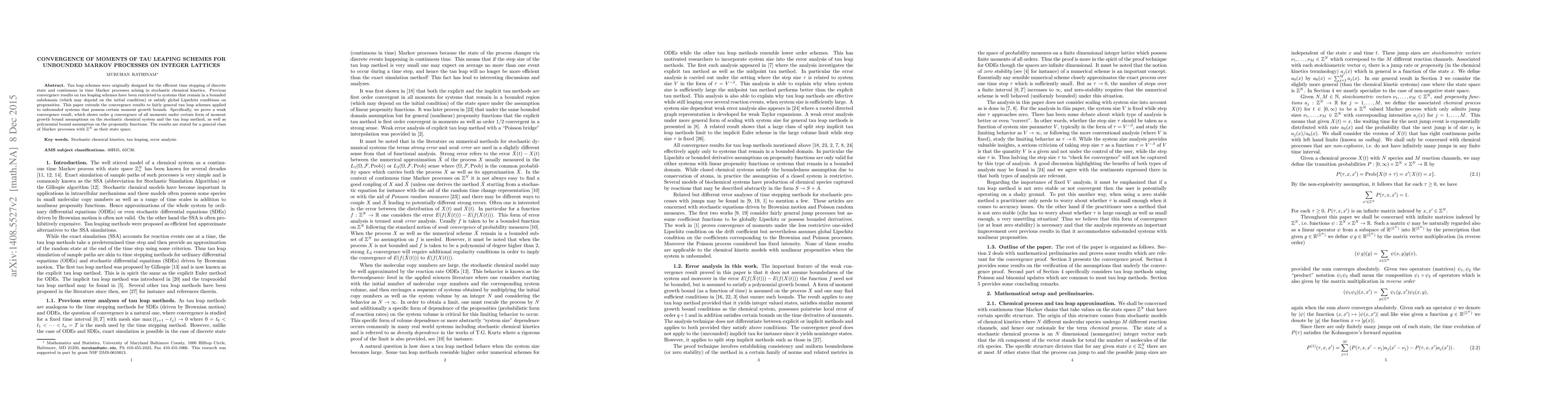 This paper extends convergence results for tau leap schemes to unbounded systems with certain moment growth bounds, proving order q convergence of moments under specific assumptions.