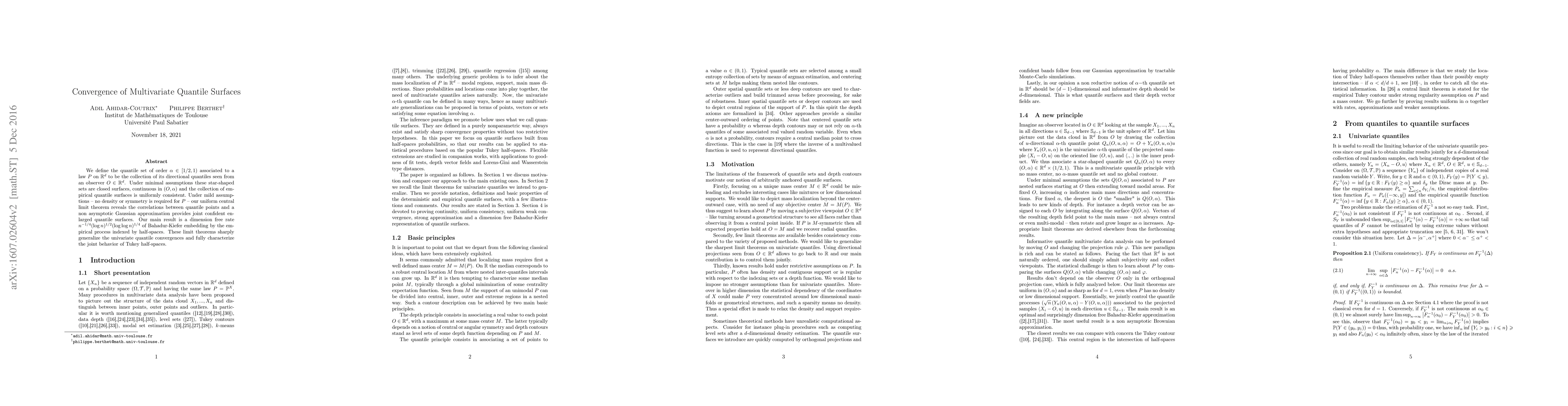 This paper studies the convergence properties of multivariate quantile surfaces, proving uniform consistency and a central limit theorem for empirical quantile surfaces. It establishes a dimension-free rate for Bahadur-Kiefer embedding, generalizing univariate results and characterizing the joint behavior of quantiles in Tukey half-spaces.