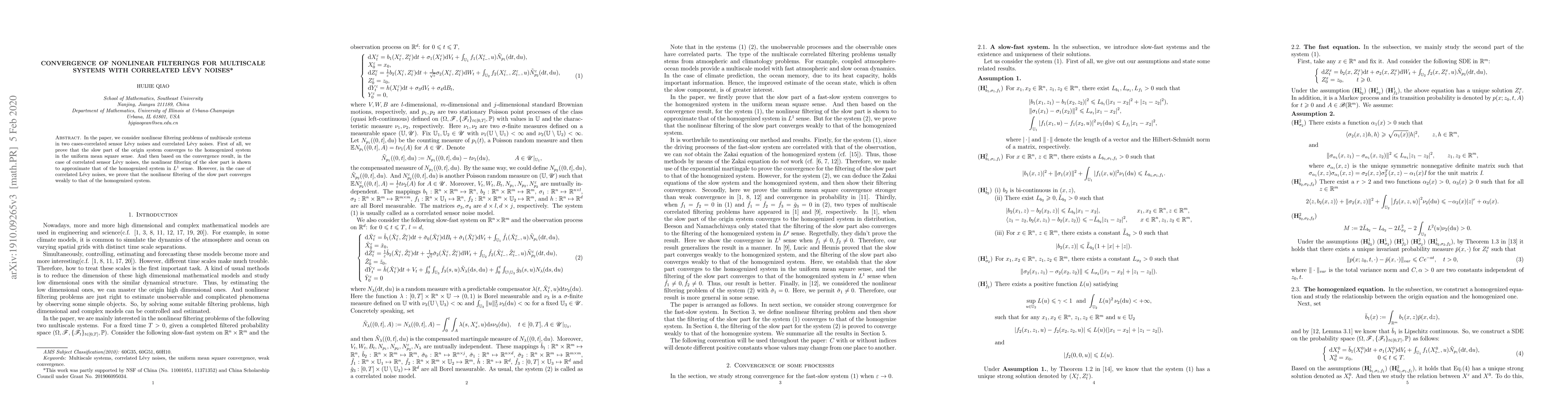 In the paper, we consider nonlinear filtering problems of multiscale systems in two cases-correlated sensor L\'evy noises and correlated L\'evy noises. First of all, we prove that the slow part of the origin system converges to the homogenized system in the uniform mean square sense. And then based on the convergence result, in the case of correlated sensor L\'evy noises, the nonlinear filtering of the slow part is shown to approximate that of the homogenized system in $L^1$ sense. However, in the case of correlated L\'evy noises, we prove that the nonlinear filtering of the slow part converges weakly to that of the homogenized system.