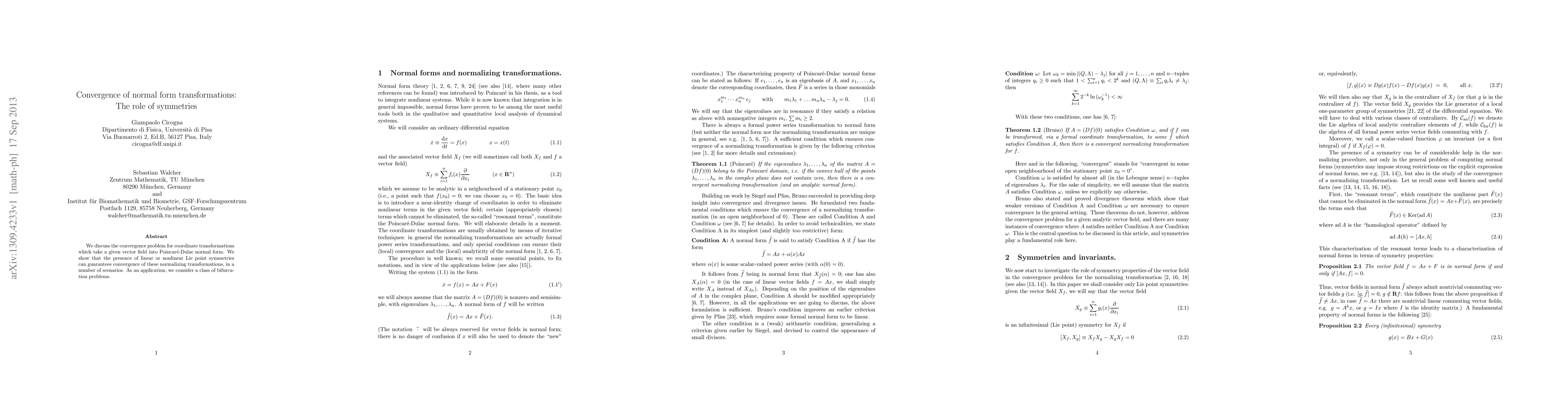 We discuss the convergence problem for coordinate transformations which take a given vector field into Poincar\'e-Dulac normal form. We show that the presence of linear or nonlinear Lie point symmetries can guaranteee convergence of these normalizing transformations, in a number of scenarios. As an application, we consider a class of bifurcation problems.