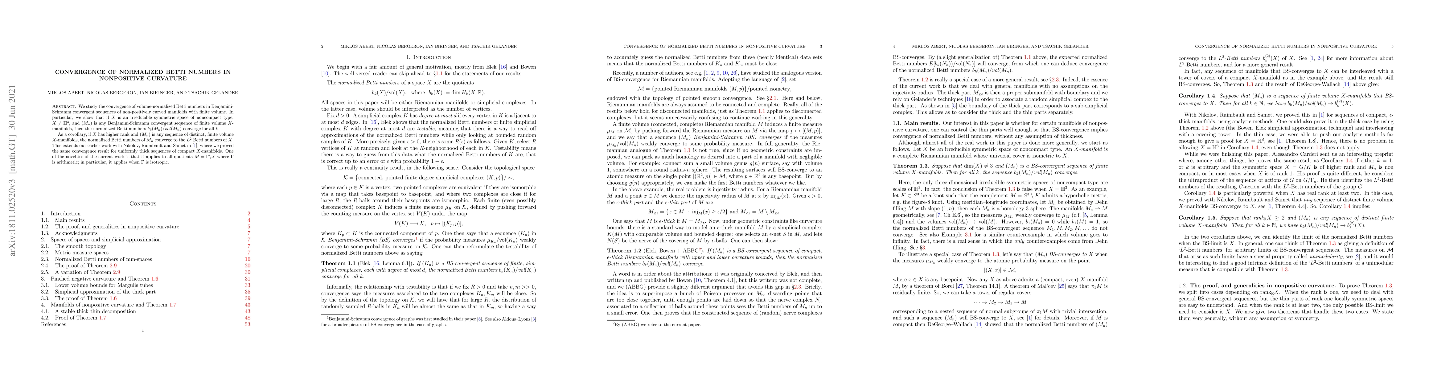 The paper introduces a method to analyze the convergence of normalized Betti numbers in the context of Benjamini-Schramm convergence, extending previous results to non-uniformly thick sequences.