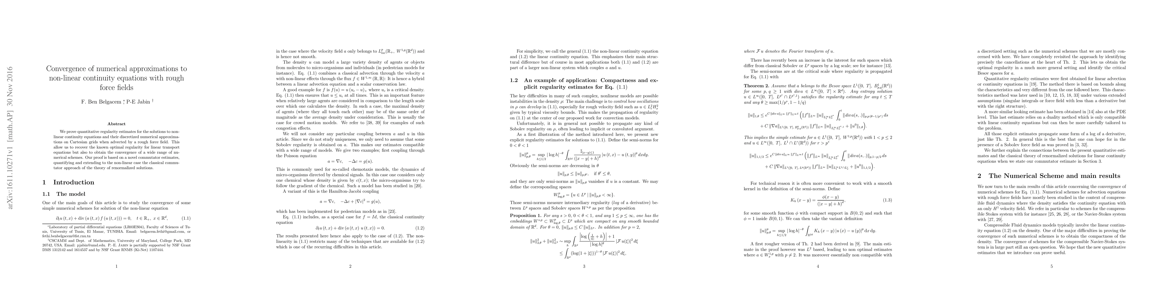 This research proves quantitative regularity estimates for non-linear continuity equation solutions and their numerical approximations on Cartesian grids under rough force fields, recovering optimal linear transport equation regularity and ensuring convergence of various numerical schemes. The proof leverages novel commutator estimates, extending classical commutator techniques to the non-linear case.