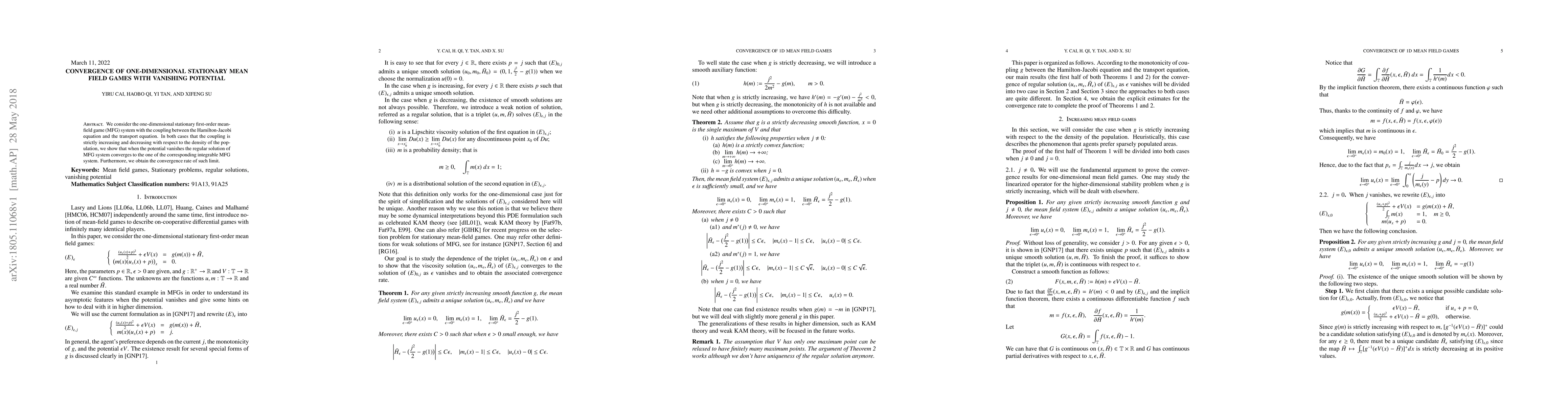 We consider the one-dimensional stationary first-order mean-field game (MFG) system with the coupling between the Hamilton-Jacobi equation and the transport equation. In both cases that the coupling is strictly increasing and decreasing with respect to the density of the population, we show that when the potential vanishes the regular solution of MFG system converges to the one of the corresponding integrable MFG system. Furthermore, we obtain the convergence rate of such limit.