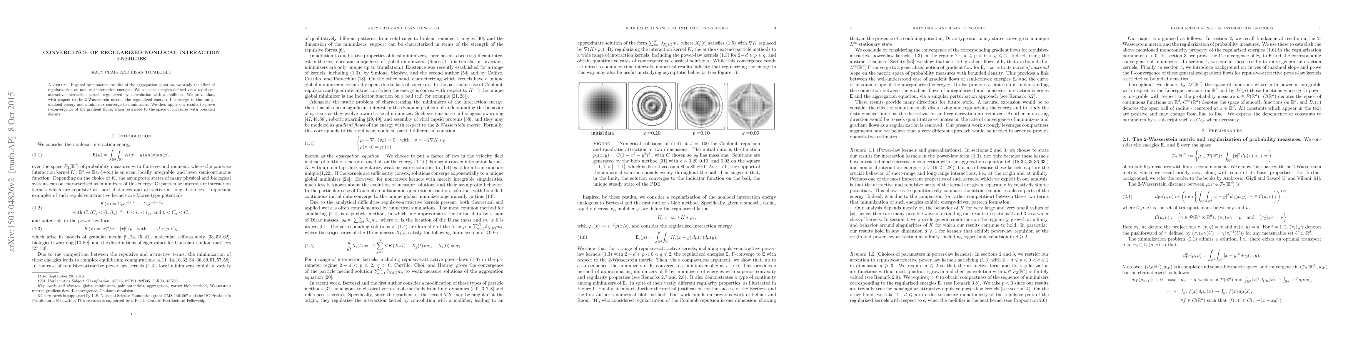 Inspired by numerical studies of the aggregation equation, we study the effect of regularization on nonlocal interaction energies. We consider energies defined via a repulsive-attractive interaction kernel, regularized by convolution with a mollifier. We prove that, with respect to the 2-Wasserstein metric, the regularized energies $\Gamma$-converge to the unregularized energy and minimizers converge to minimizers. We then apply our results to prove $\Gamma$-convergence of the gradient flows, when restricted to the space of measures with bounded density.