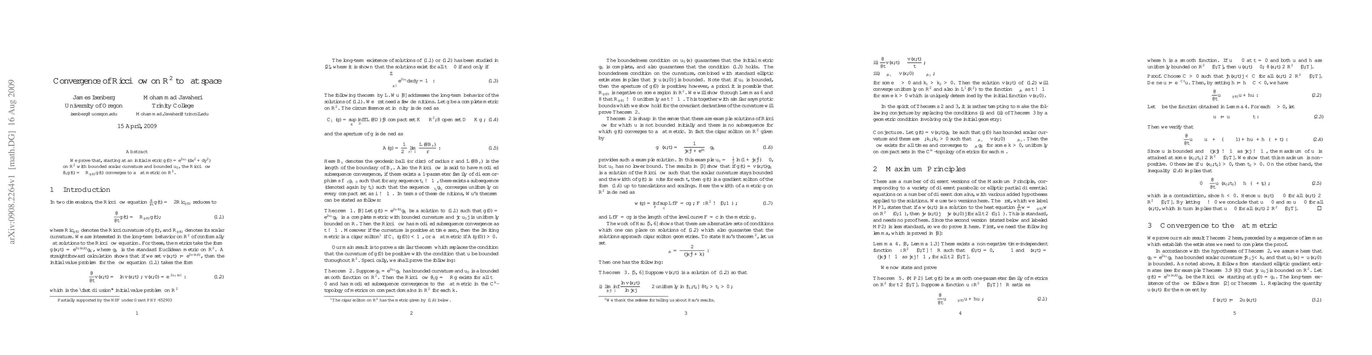 The Ricci flow on 2D flat space starting from a metric with bounded scalar curvature converges to a flat metric as time increases. This result holds true for initial metrics with bounded u0 values.