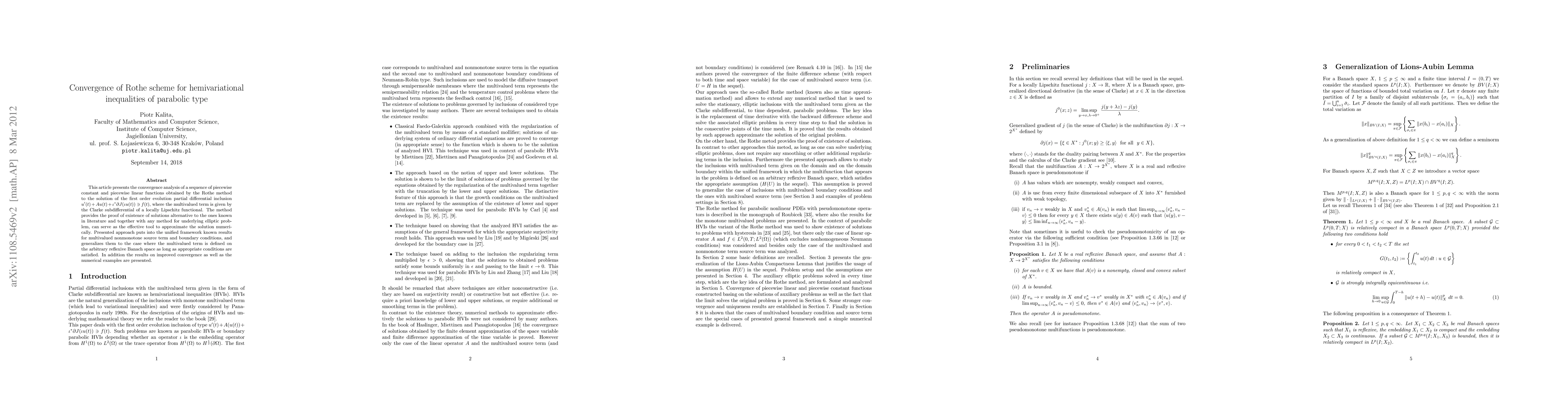 This article presents the convergence analysis of a sequence of piecewise constant and piecewise linear functions obtained by the Rothe method to the solution of the first order evolution partial differential inclusion $u'(t)+Au(t)+\iota^*\partial J(\iota u(t))\ni f(t)$, where the multivalued term is given by the Clarke subdifferential of a locally Lipschitz functional. The method provides the proof of existence of solutions alternative to the ones known in literature and together with any method for underlying elliptic problem, can serve as the effective tool to approximate the solution numerically. Presented approach puts into the unified framework known results for multivalued nonmonotone source term and boundary conditions, and generalizes them to the case where the multivalued term is defined on the arbitrary reflexive Banach space as long as appropriate conditions are satisfied. In addition the results on improved convergence as well as the numerical examples are presented.