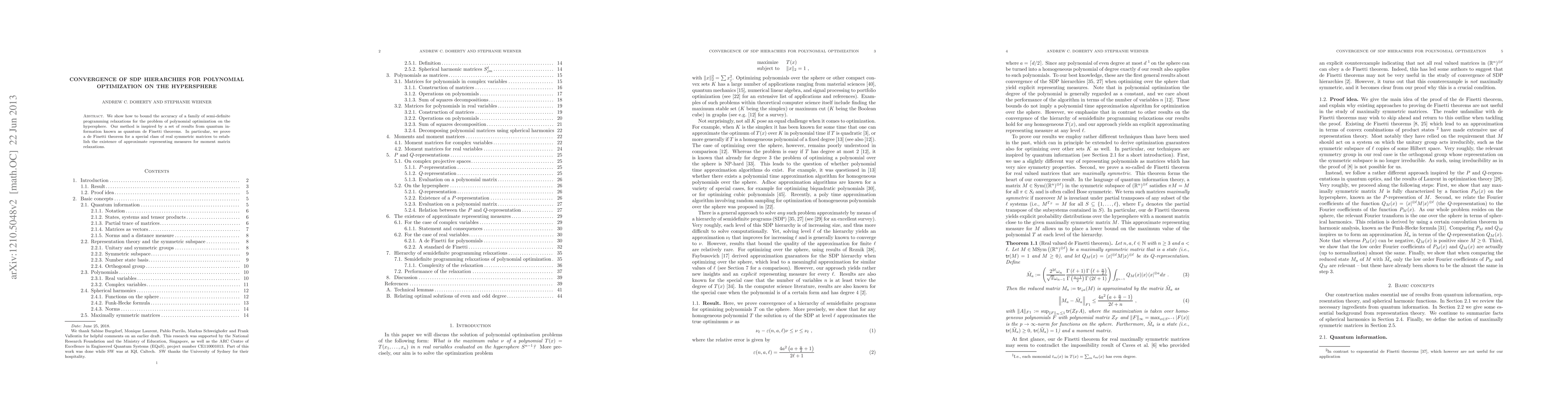 This paper demonstrates how to accurately bound semi-definite programming relaxations for polynomial optimization on the hypersphere, leveraging insights from quantum de Finetti theorems. It proves a de Finetti theorem for real symmetric matrices to establish approximate representing measures for moment matrix relaxations.