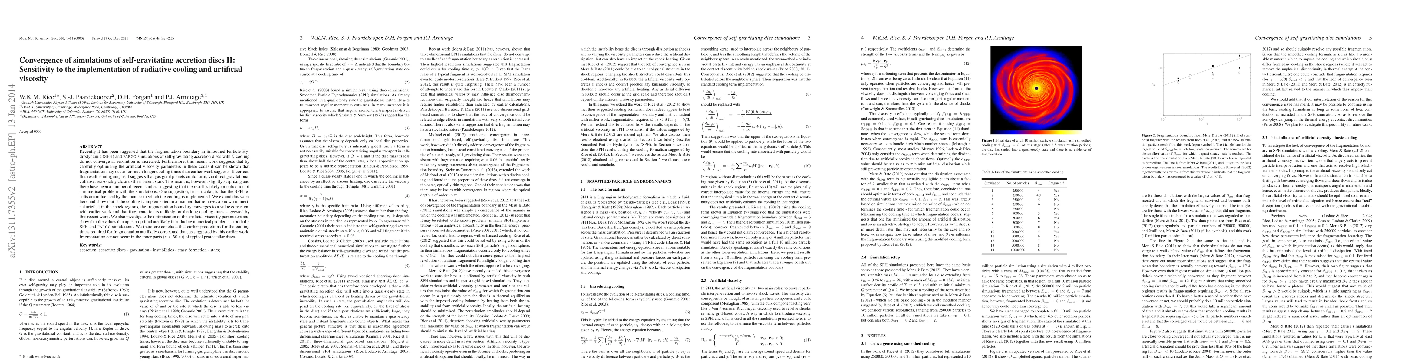 This paper investigates the convergence of self-gravitating accretion disc simulations, focusing on the impact of radiative cooling and artificial viscosity. It finds that improved cooling implementation resolves a known numerical artefact, leading to a fragmentation boundary consistent with earlier studies, while optimized artificial viscosity likely introduces numerical issues. The conclusion is that fragmentation is unlikely for long cooling times in the inner regions of protostellar discs.