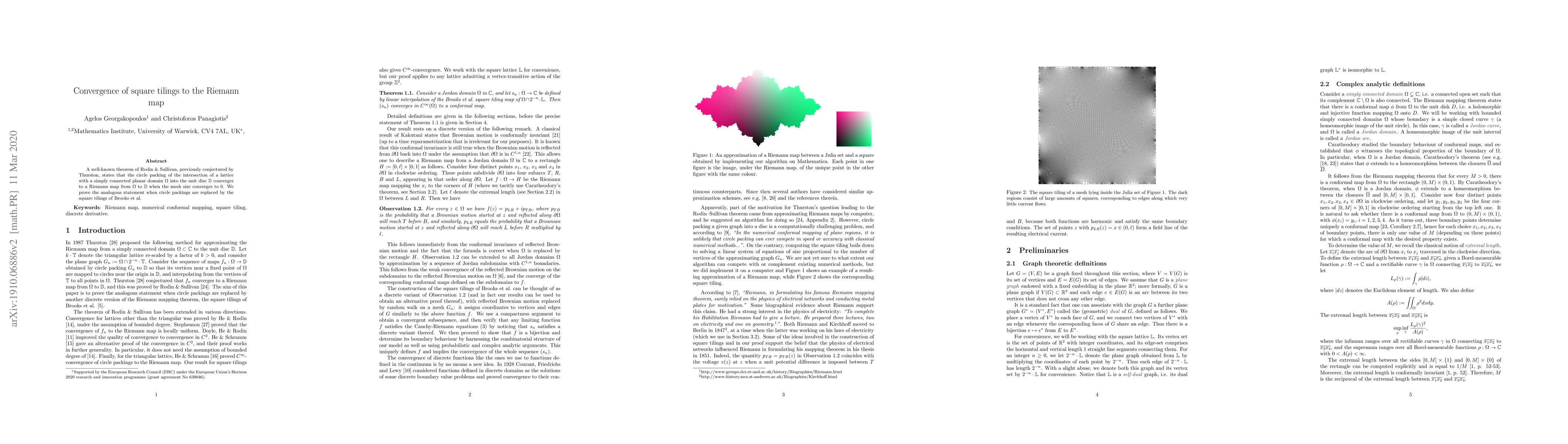 A well-known theorem of Rodin \& Sullivan, previously conjectured by Thurston, states that the circle packing of the intersection of a lattice with a simply connected planar domain $\Omega$ into the unit disc $\mathbb{D}$ converges to a Riemann map from $\Omega$ to $\mathbb{D}$ when the mesh size converges to 0. We prove the analogous statement when circle packings are replaced by the square tilings of Brooks et al.
