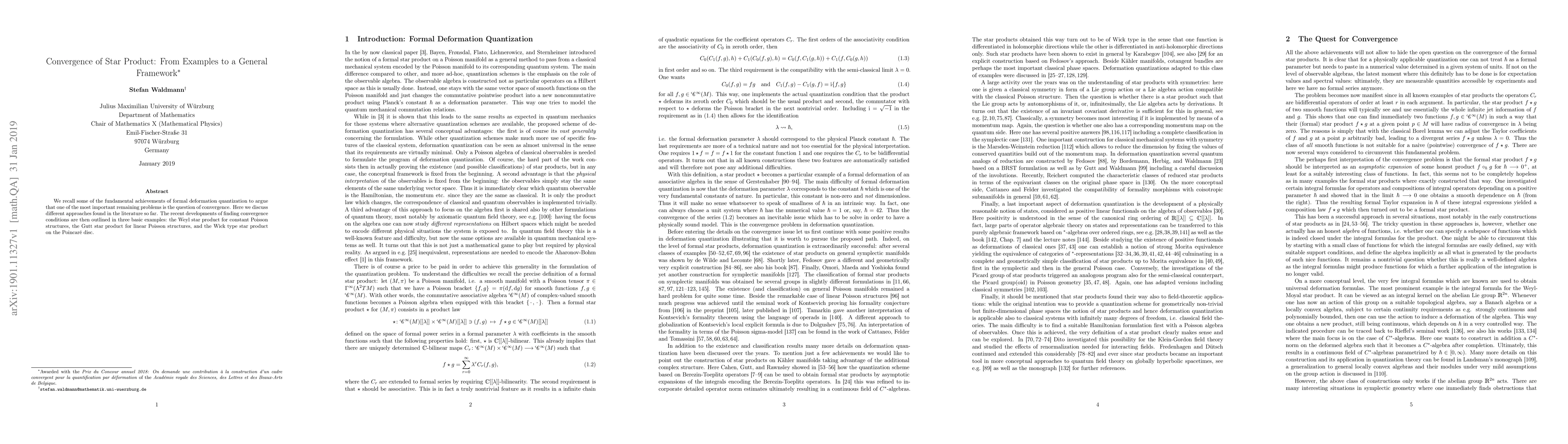 This paper reviews the progress in formal deformation quantization and focuses on convergence issues, summarizing various approaches and recent developments in establishing convergence conditions for three specific star products: the Weyl, Gutt, and Wick type star products.