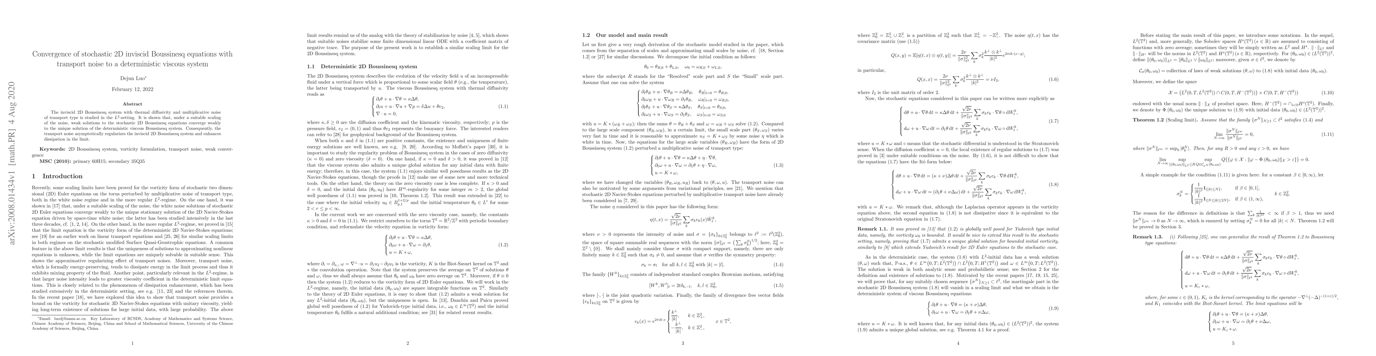 This paper investigates the convergence of stochastic 2D inviscid Boussinesq equations with transport noise to a deterministic viscous system, demonstrating that under appropriate noise scaling, stochastic solutions converge to the deterministic viscous system, thereby regularizing the inviscid system and enhancing dissipation.