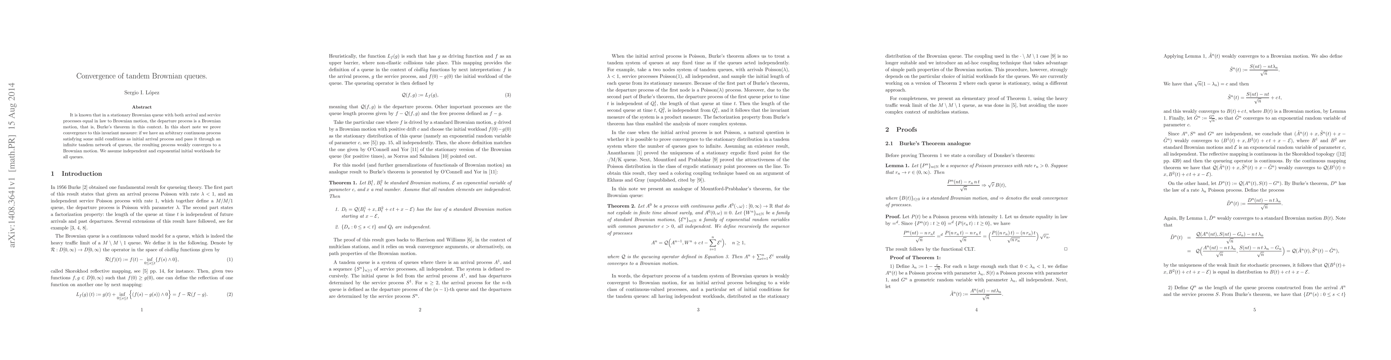 This paper proves that an arbitrary continuous process, when passed through an infinite tandem network of Brownian queues with independent and exponential initial workloads, weakly converges to a Brownian motion, extending Burke's theorem to tandem systems.