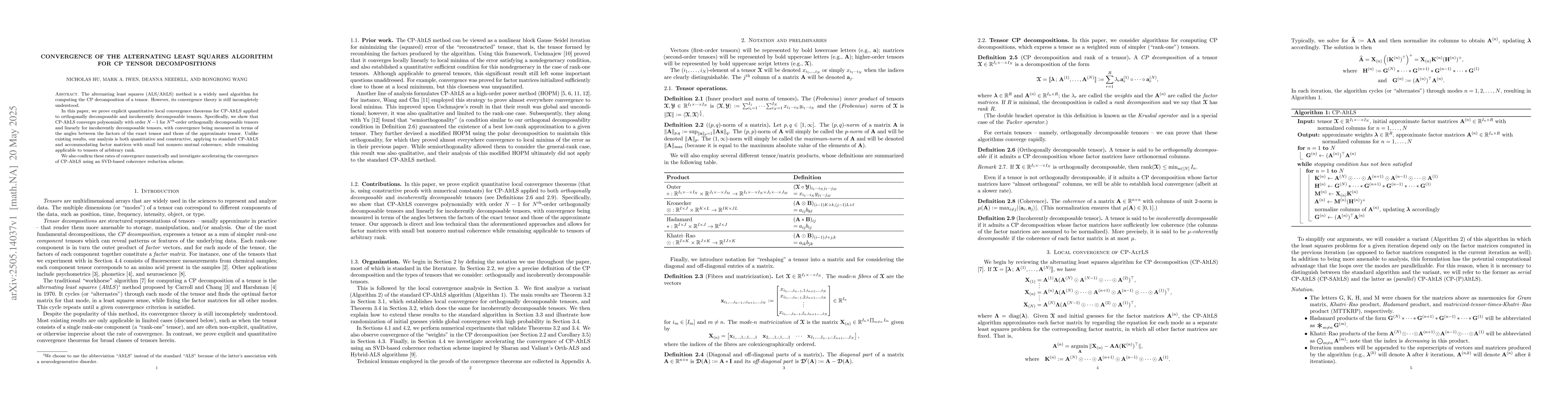 Explicit quantitative local convergence theorems for CP-AltLS applied to orthogonally decomposable and incoherently decomposable tensors.