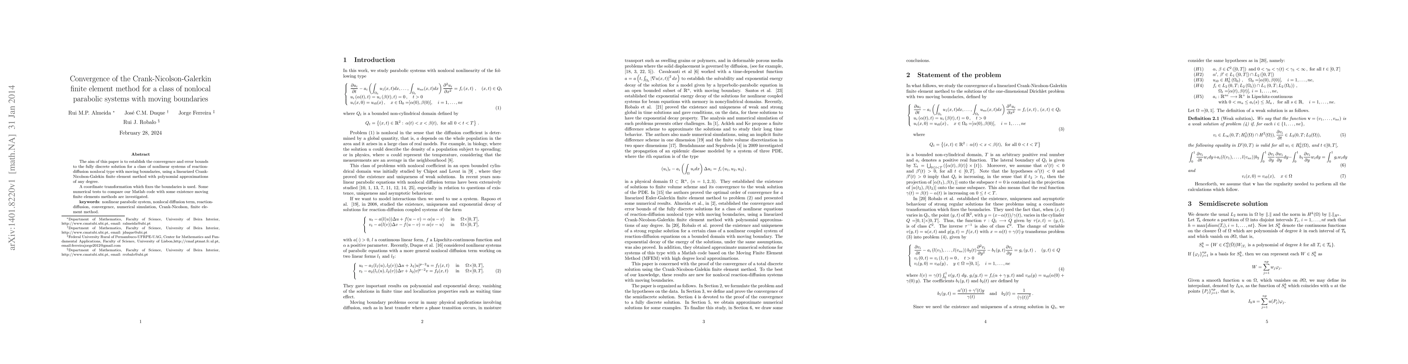 The aim of this paper is to establish the convergence and error bounds to the fully discrete solution for a class of nonlinear systems of reaction-diffusion nonlocal type with moving boundaries, using a linearized Crank-Nicolson-Galerkin finite element method with polynomial approximations of any degree. A coordinate transformation which fixes the boundaries is used. Some numerical tests to compare our Matlab code with some existing moving finite elements methods are investigated.
