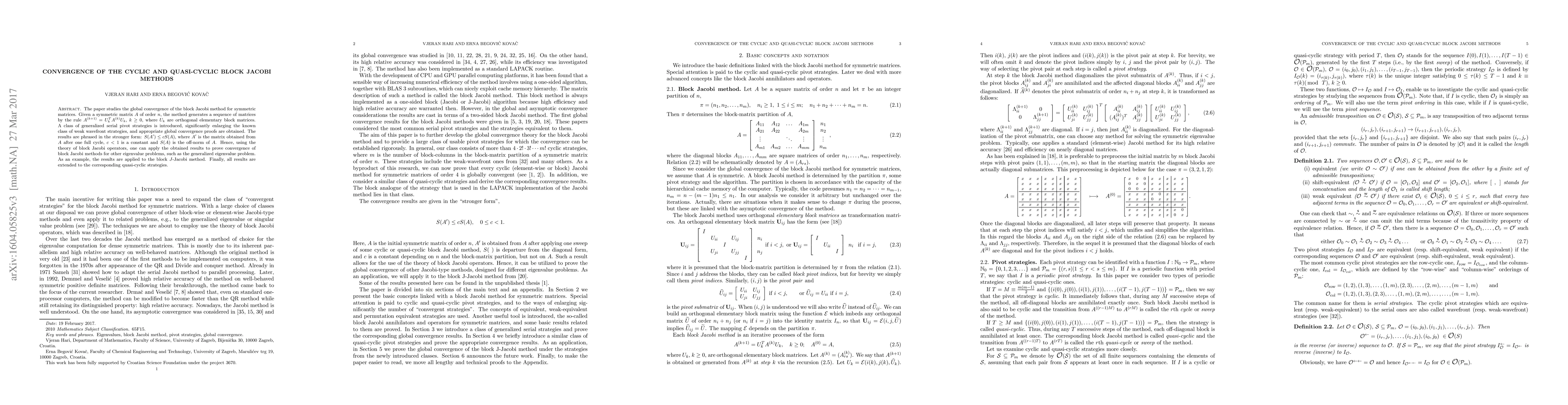 The paper investigates the global convergence of block Jacobi methods for symmetric matrices, introducing a generalized serial pivot strategy that significantly expands on existing weak wavefront strategies, and proves global convergence with a bound on the spectral radius.