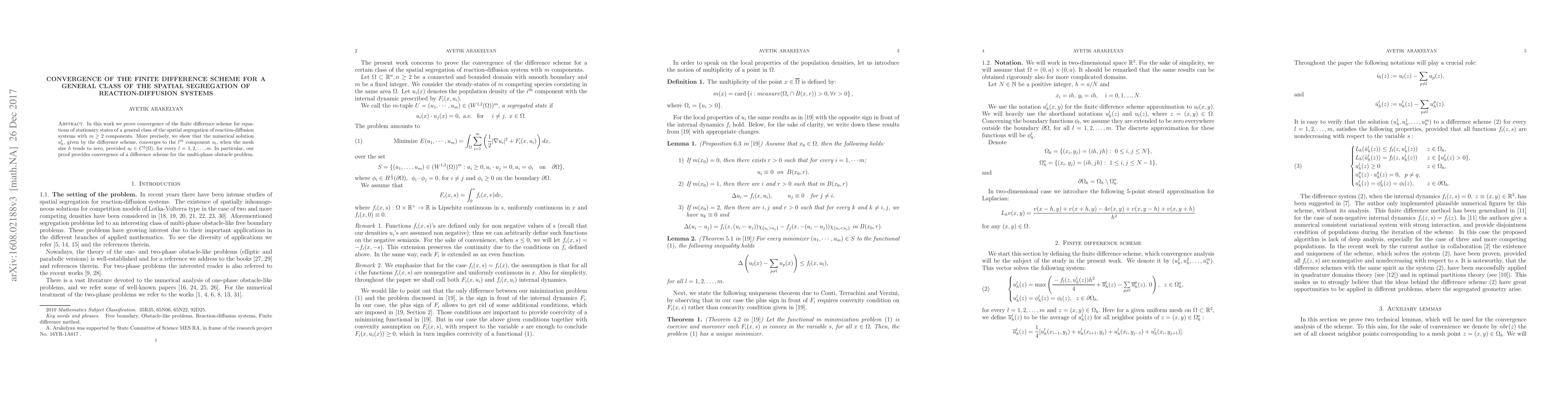 This paper proves convergence of a finite difference scheme for reaction-diffusion systems with multiple components, showing it accurately solves the system as mesh size approaches zero.