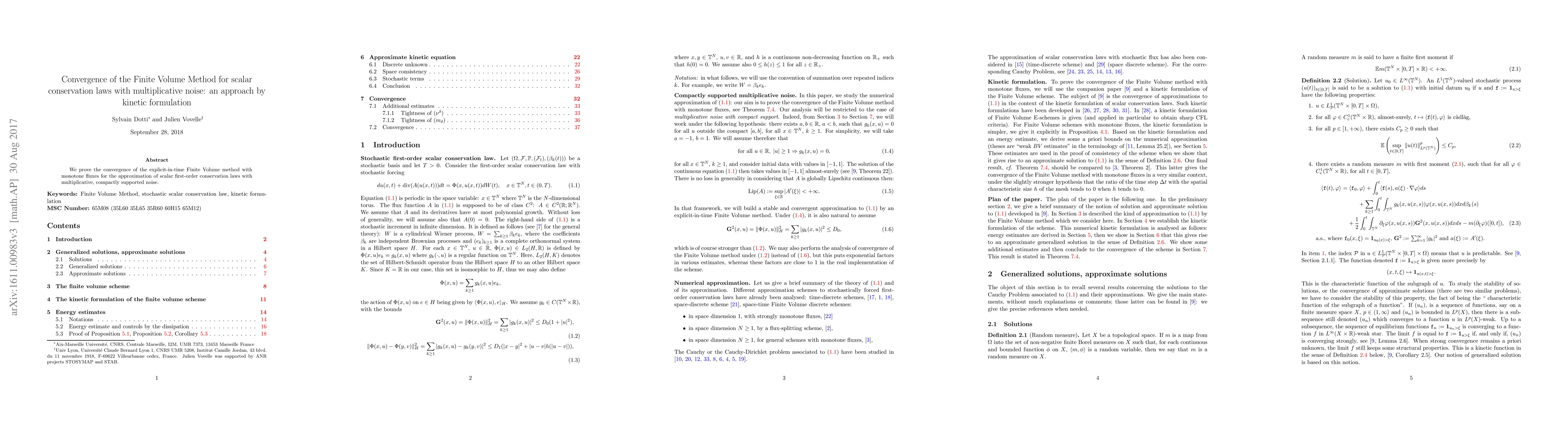 Two-Line Summary: This paper proves the convergence of the explicit-in-time Finite Volume method with monotone fluxes for solving scalar first-order conservation laws in the presence of multiplicative, compactly supported noise. The approach utilizes kinetic formulation to handle the stochastic nature of the problem effectively.