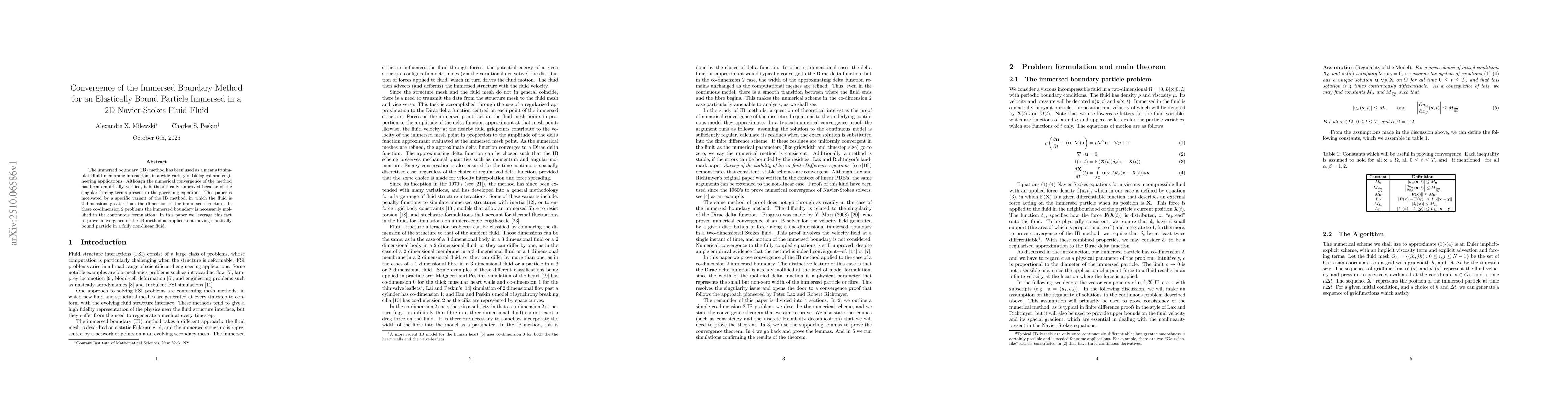 The immersed boundary (IB) method has been used as a means to simulate fluid-membrane interactions in a wide variety of biological and engineering applications. Although the numerical convergence of the method has been empirically verified, it is theoretically unproved because of the singular forcing terms present in the governing equations. This paper is motivated by a specific variant of the IB method, in which the fluid is 2 dimensions greater than the dimension of the immersed structure. In these co-dimension 2 problems the immersed boundary is necessarily mollified in the continuous formulation. In this paper we leverage this fact to prove convergence of the IB method as applied to a moving elastically bound particle in a fully non-linear fluid.