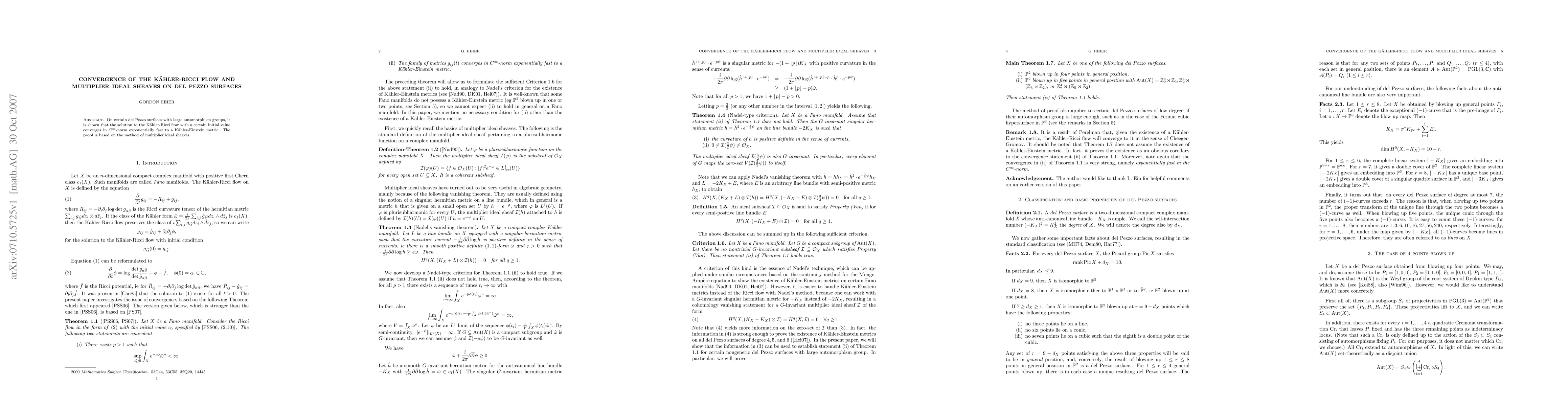 Summary: The paper demonstrates that the Kähler-Ricci flow on del Pezzo surfaces with large automorphism groups converges exponentially to a Kähler-Einstein metric, employing the method of multiplier ideal sheaves to prove this convergence.