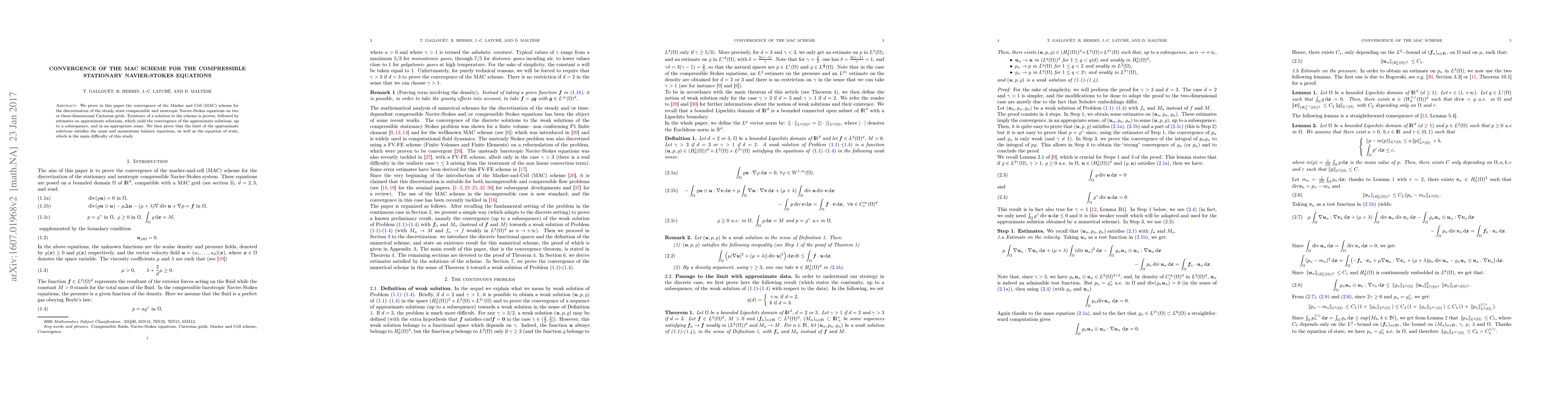 This paper proves the convergence of the Marker and Cell (MAC) scheme for solving the steady state compressible Navier-Stokes equations on Cartesian grids. It establishes the existence of a solution and demonstrates convergence of approximate solutions, ultimately showing that the limit satisfies mass, momentum, and state equations.