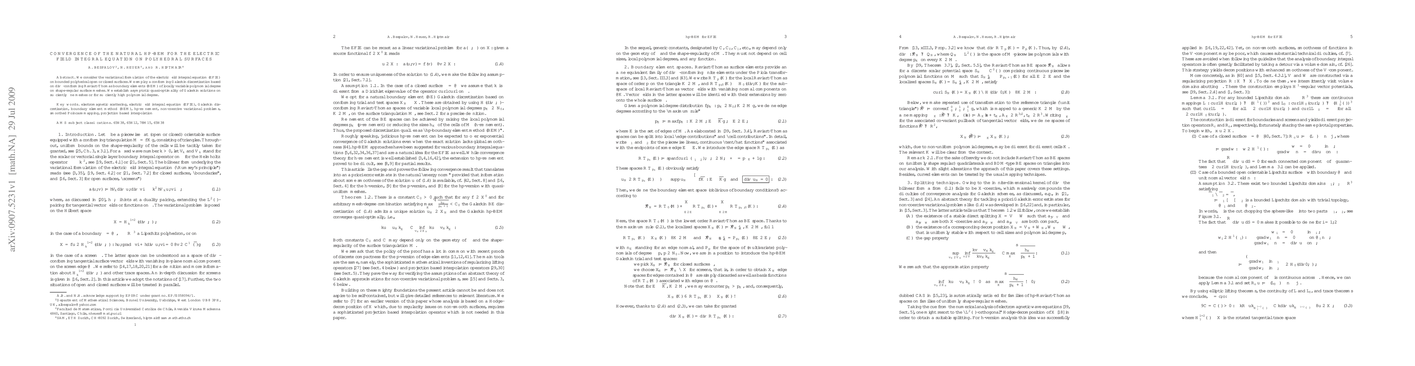 This paper investigates the convergence of a natural hp-BEM for solving the electric field integral equation on polyhedral surfaces, demonstrating asymptotic quasi-optimality through a conforming Galerkin discretization using div-conforming Raviart-Thomas boundary elements of varying polynomial degrees.