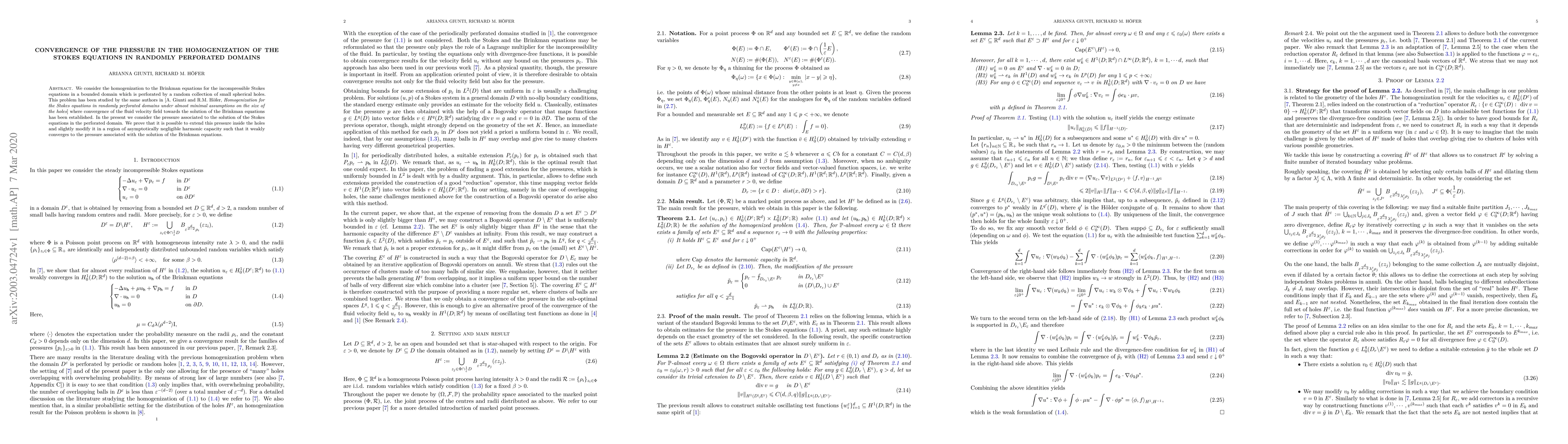This paper investigates the homogenization of the incompressible Stokes equations in randomly perforated domains, focusing on the convergence of the pressure. It extends the previously established convergence of the fluid velocity field to show that the pressure also converges, albeit after modification in a region of negligible harmonic capacity.