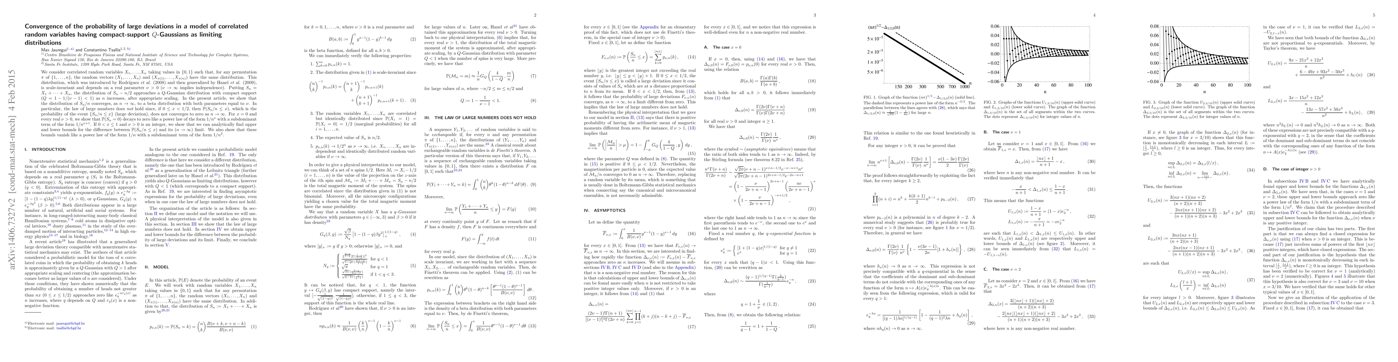As n increases, a model of correlated random variables with compact-support Q-Gaussians converges to a beta distribution with parameters equal to υ (nu), leading to large deviations from the law of large numbers.