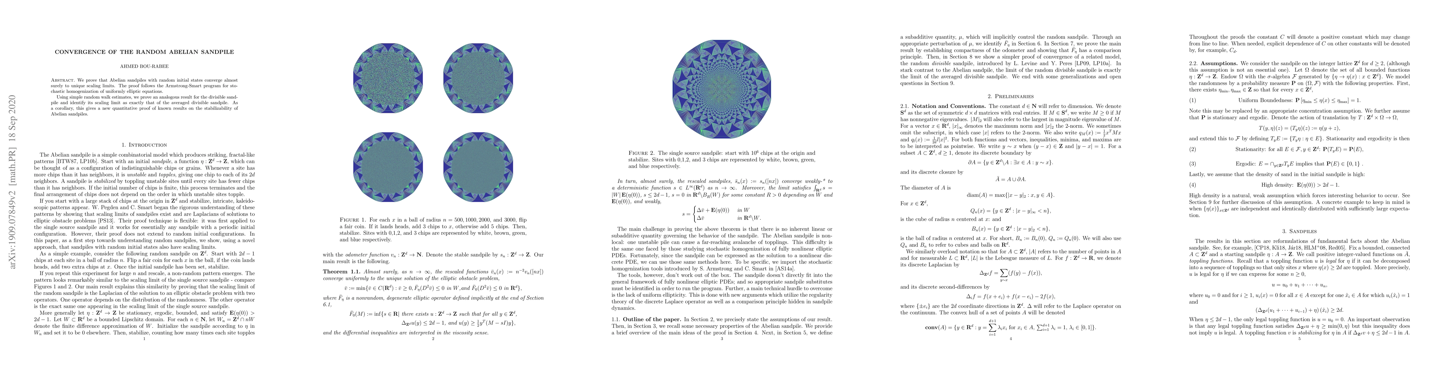 This paper demonstrates the convergence of random Abelian sandpiles to unique scaling limits almost surely, following Armstrong-Smart's stochastic homogenization program. It also extends the result to divisible sandpiles, identifying their scaling limit and providing a new proof for the stabilizability of Abelian sandpiles.