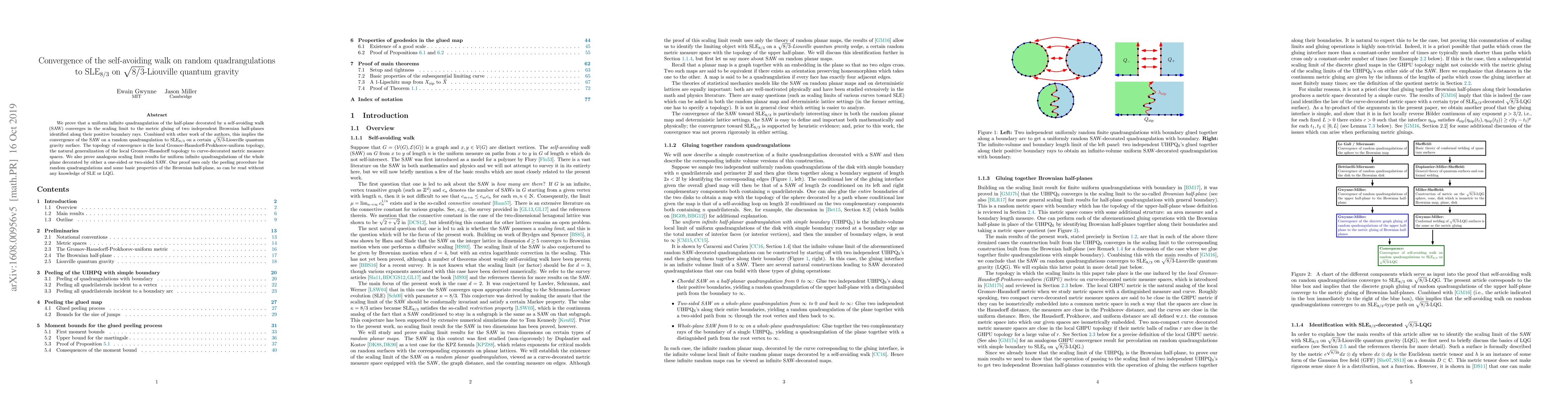 This research demonstrates the convergence of self-avoiding walks on random quadrangulations to SLE$_{8/3}$ within $\sqrt{8/3}$-Liouville quantum gravity surfaces. The proof leverages the peeling procedure and properties of Brownian motion, providing insights into scaling limits in decorated metric spaces.