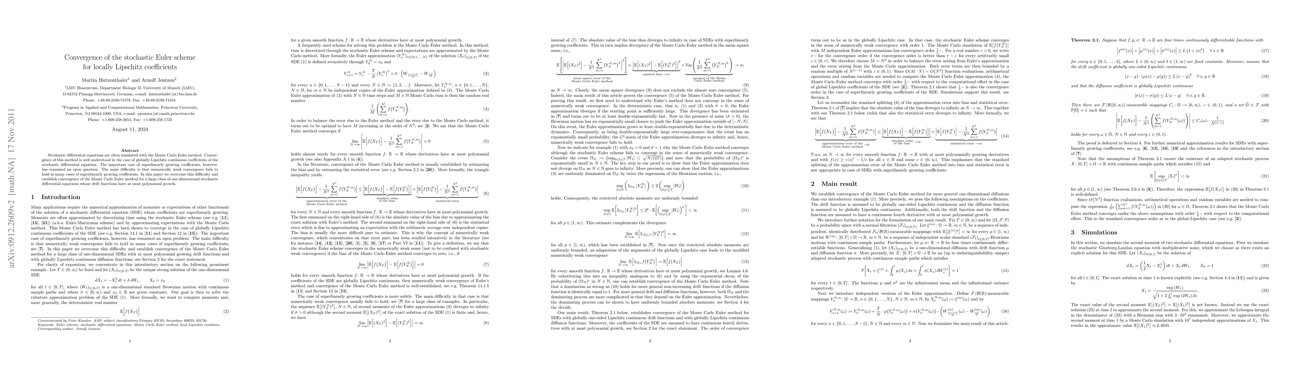 This paper establishes convergence of the stochastic Euler scheme for one-dimensional stochastic differential equations with drift functions exhibiting polynomial growth, addressing the open question regarding superlinearly growing coefficients. The authors overcome numerical weak convergence issues to achieve the result.