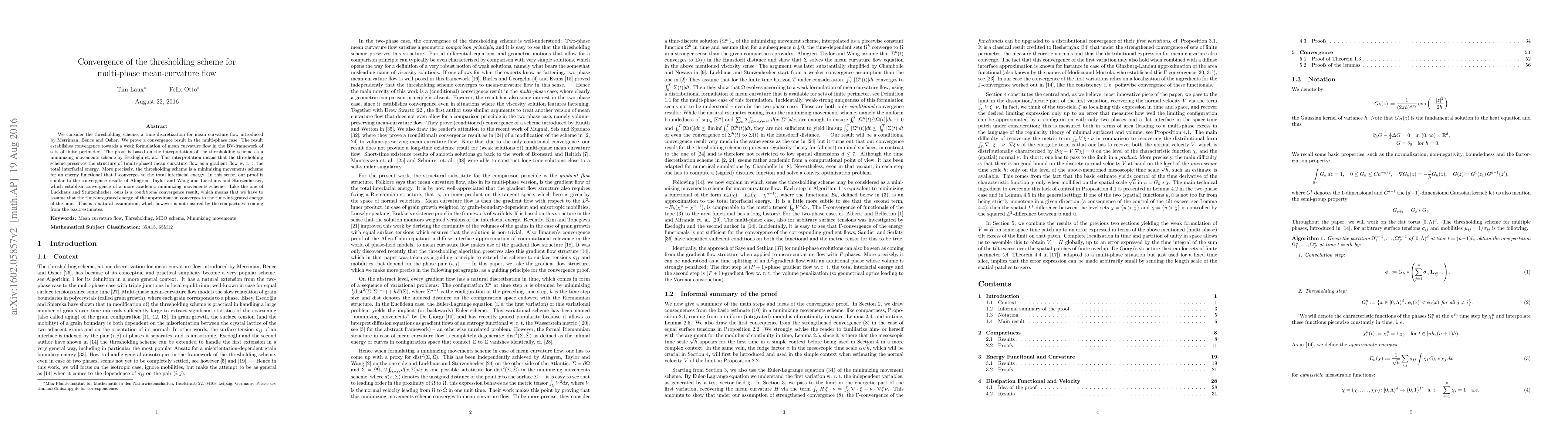We consider the thresholding scheme, a time discretization for mean curvature flow introduced by Merriman, Bence and Osher. We prove a convergence result in the multi-phase case. The result establishes convergence towards a weak formulation of mean curvature flow in the BV-framework of sets of finite perimeter. The proof is based on the interpretation of the thresholding scheme as a minimizing movement scheme by Esedoglu et. al.. This interpretation means that the thresholding scheme preserves the structure of (multi-phase) mean curvature flow as a gradient flow w. r. t. the total interfacial energy. More precisely, the thresholding scheme is a minimizing movement scheme for an energy functional that $\Gamma$-converges to the total interfacial energy. In this sense, our proof is similar to the convergence results of Almgren, Taylor and Wang and Luckhaus and Sturzenhecker, which establish convergence of a more academic minimizing movement scheme. Like the one of Luckhaus and Sturzenhecker, ours is a conditional convergence result, which means that we have to assume that the time-integrated energy of the approximation converges to the time-integrated energy of the limit. This is a natural assumption, which however is not ensured by the compactness coming from the basic estimates.
