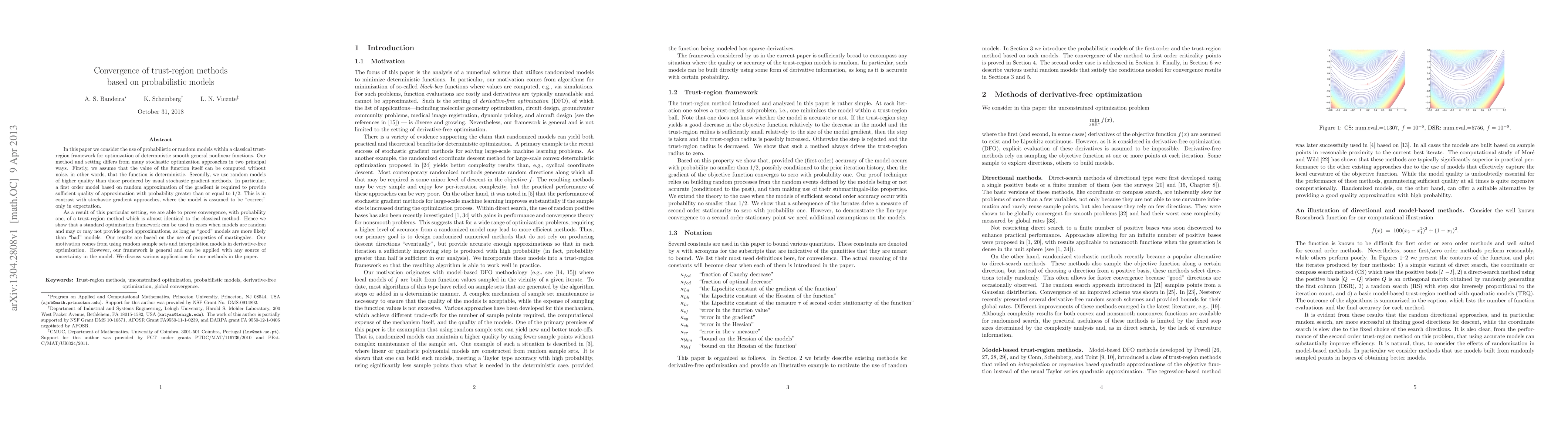 This paper proposes a trust-region optimization method that incorporates probabilistic models to handle deterministic smooth nonlinear functions, ensuring convergence with probability one. Unlike stochastic gradient methods, it uses higher-quality random models that are "good" with a probability greater than or equal to 1/2, allowing for reliable optimization even when models are uncertain.