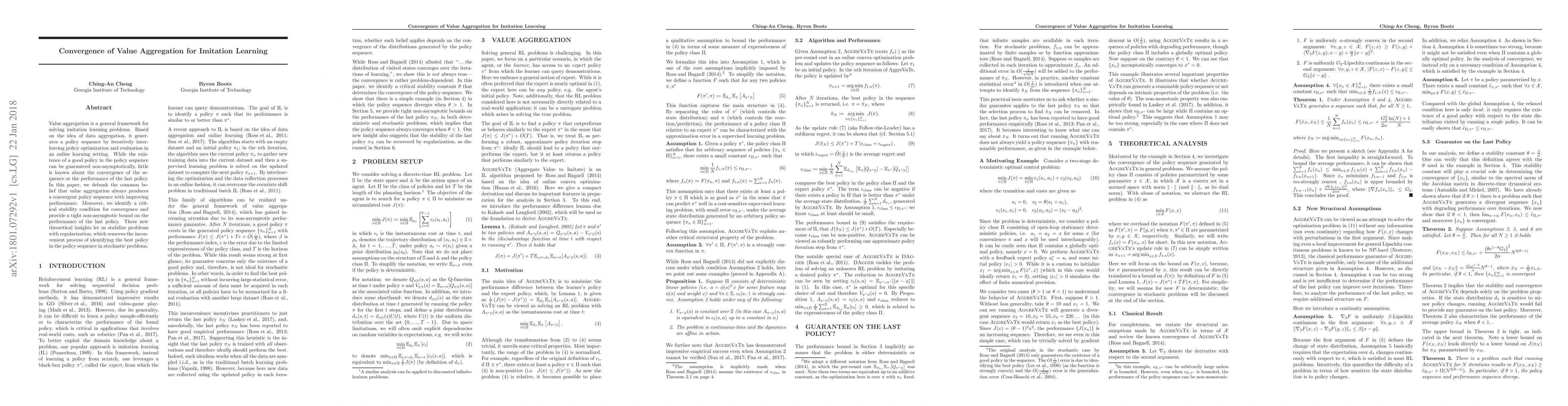 Value aggregation is a general framework for solving imitation learning problems. Based on the idea of data aggregation, it generates a policy sequence by iteratively interleaving policy optimization and evaluation in an online learning setting. While the existence of a good policy in the policy sequence can be guaranteed non-asymptotically, little is known about the convergence of the sequence or the performance of the last policy. In this paper, we debunk the common belief that value aggregation always produces a convergent policy sequence with improving performance. Moreover, we identify a critical stability condition for convergence and provide a tight non-asymptotic bound on the performance of the last policy. These new theoretical insights let us stabilize problems with regularization, which removes the inconvenient process of identifying the best policy in the policy sequence in stochastic problems.