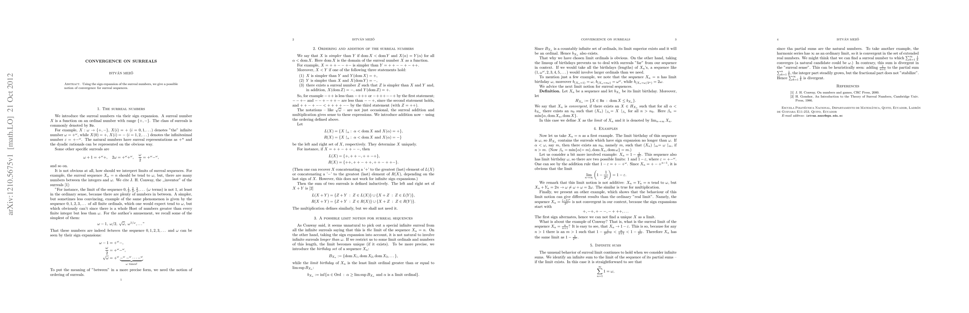Using the sign expansion of the surreal numbers, we give a possible notion of convergence for surreal sequences.