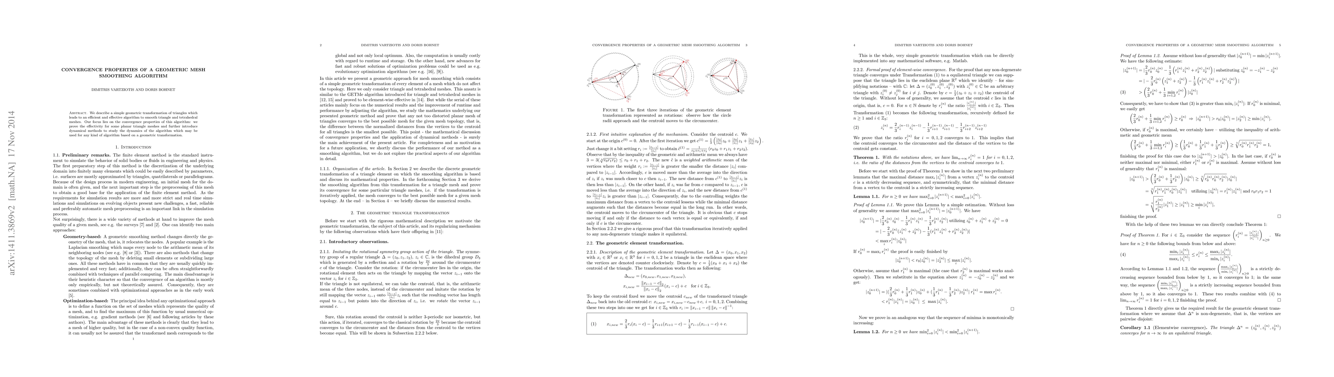 We describe a simple geometric transformation of triangles which leads to an efficient and effective algorithm to smooth triangle and tetrahedral meshes. Our focus lies on the convergence properties of this algorithm: we prove the effectivity for some planar triangle meshes and further introduce dynamical methods to study the dynamics of the algorithm which may be used for any kind of algorithm based on a geometric transformation.