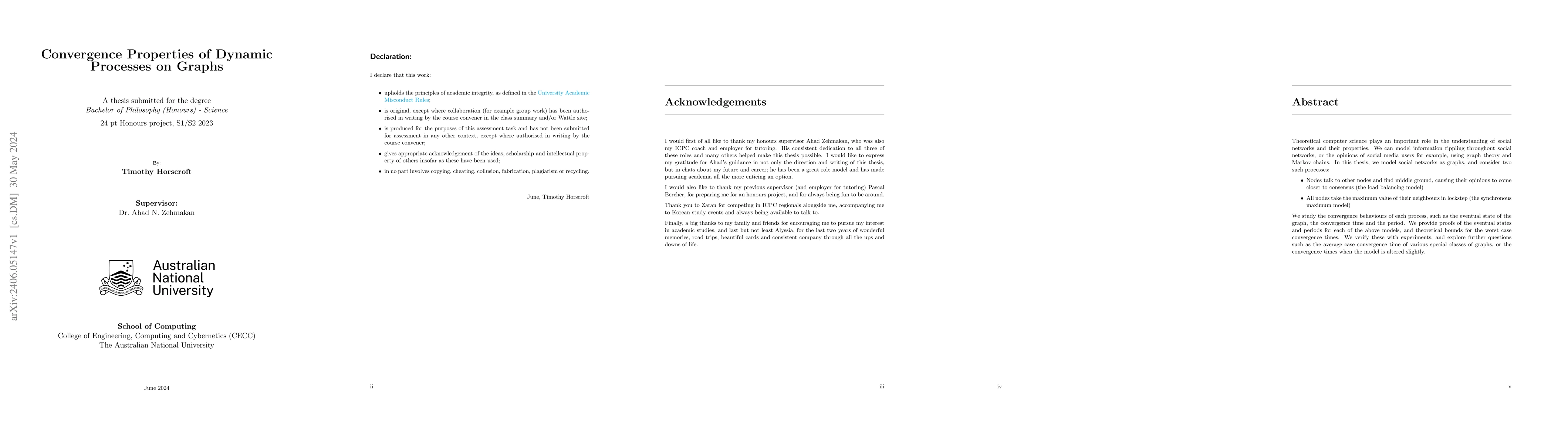 This research explores convergence properties of dynamic processes on graphs, modeling social networks with Markov chains. It investigates two consensus models: load balancing and synchronous maximum, analyzing their convergence behaviors, states, and times, providing theoretical proofs and experimental verification.